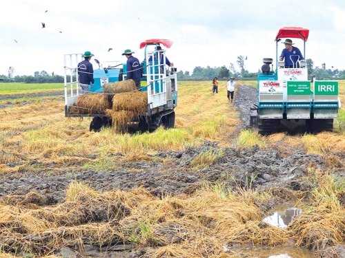 - Để gốc rạ cao 15-20 cm, rải đều rơm rạ trên mặt ruộng (không thu gom).