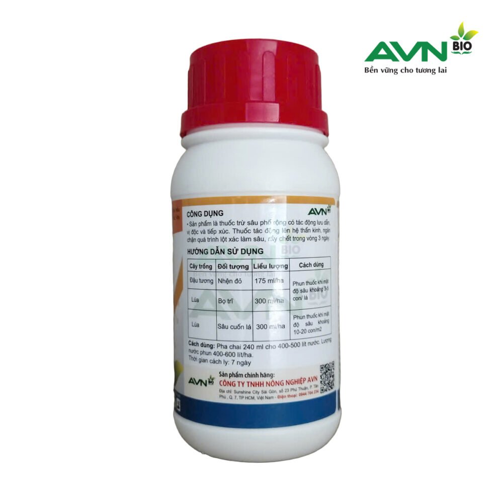 Cách dùng: Pha chai 240 ml cho 400-500 lít nước. Lượng nước phun 400-600 lít/ha.